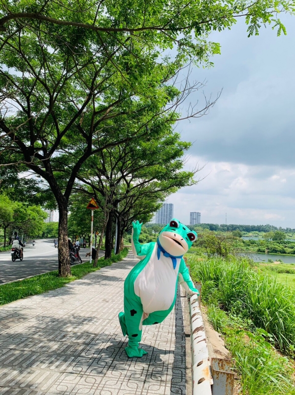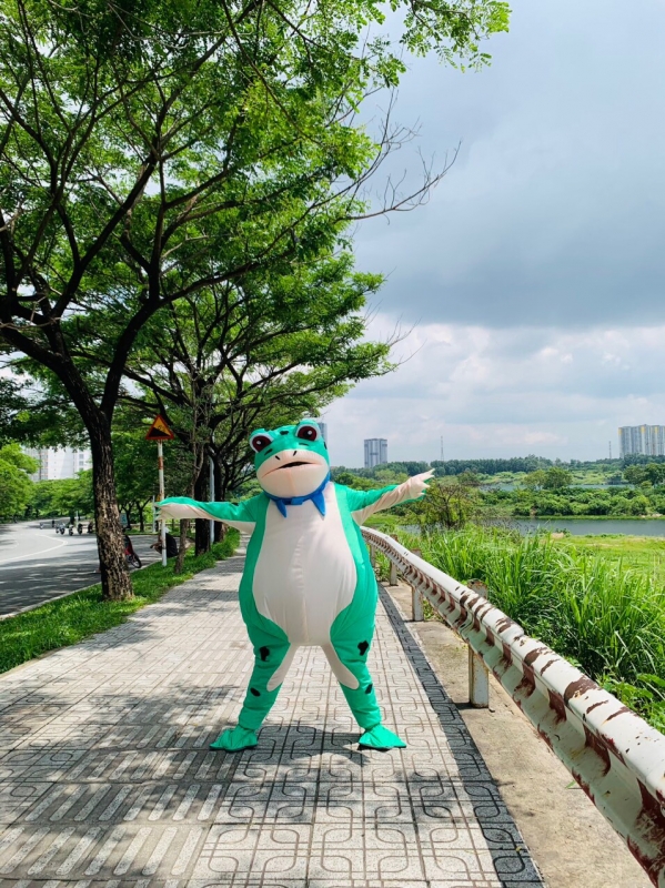 MASCOT HƠI ẾCH XANH LÁ DÙNG PIN
