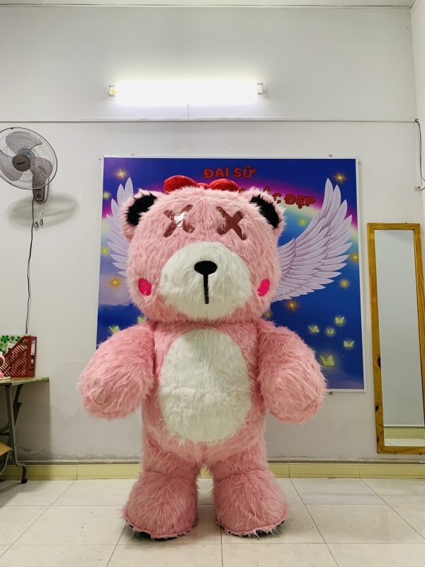 MASCOT HƠI GẤU HỒNG SỬ DỤNG PIN ẮC QUY