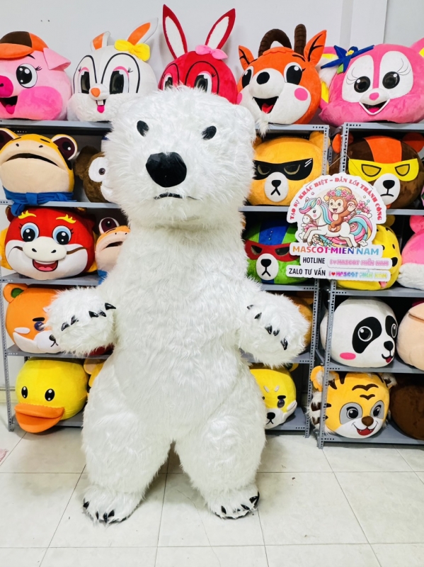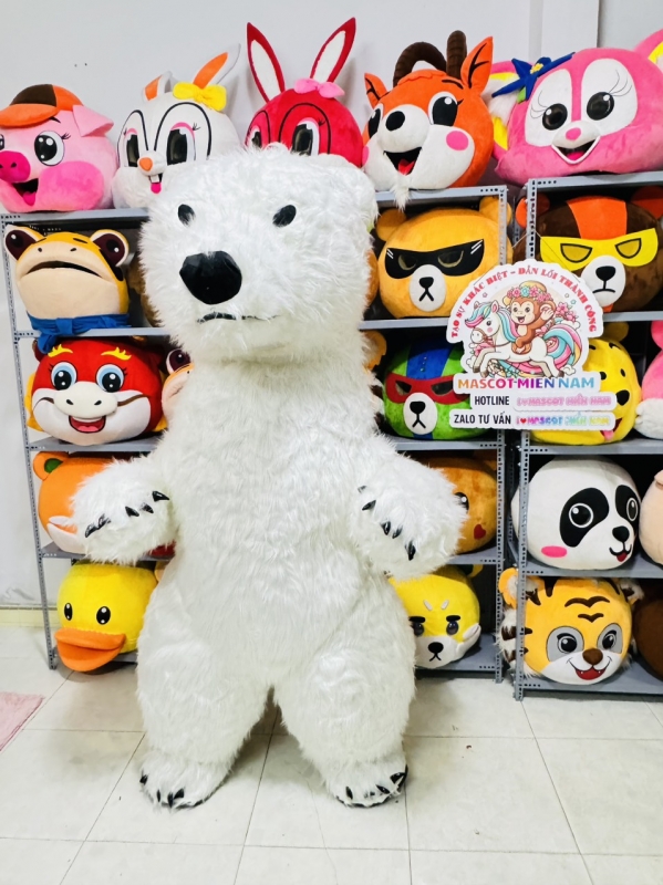 MASCOT HƠI GẤU TRẮNG BẮC CỰC CAO 2M, SỬ DỤNG PIN ẮC QUY