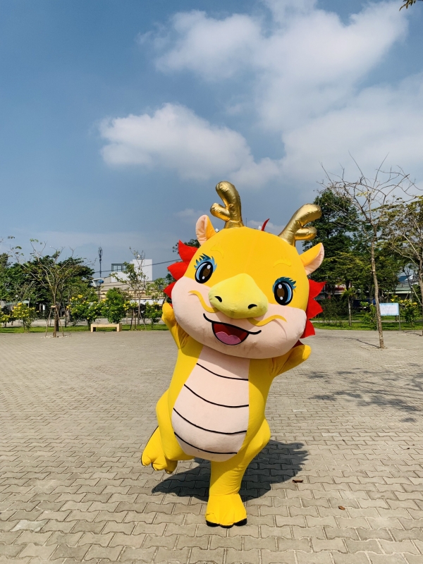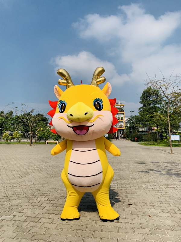 MASCOT HƠI RỒNG VÀNG, CAO 2M, SỬ DỤNG PIN ẮC QUY